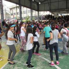 Além das danças que aconteceram na quadra nos períodos manhã e tarde, também houve exposição dos trabalhos realizados nas aulas de Artes e das produções realizadas pelos alunos da EJA.