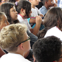 Os alunos dos 3ºs, 4ºs e 5ºs anos puderam assistir um espetáculo riquíssimo e interativo, que recebe o patrocínio do MEC e da empresa Tegma.